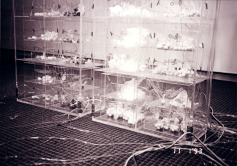 1992’s Document was Wang Jianwei’s first attempt at a “grey system” experiment, in which he eliminated viewing by means of a document, initiated what he designated as “grey areas” and interspersed, transitional spaces, and, in conjunction with the process of scientific experimentation, generated predictions and signals. Signals. The language may not seem very sophisticated today, but this way of thinking has profoundly influenced his practice since then. In the following year’s Event, Process, State, he blurred the boundaries between art, science and philosophy, as well as between the individual and society. –Lu Mingjun